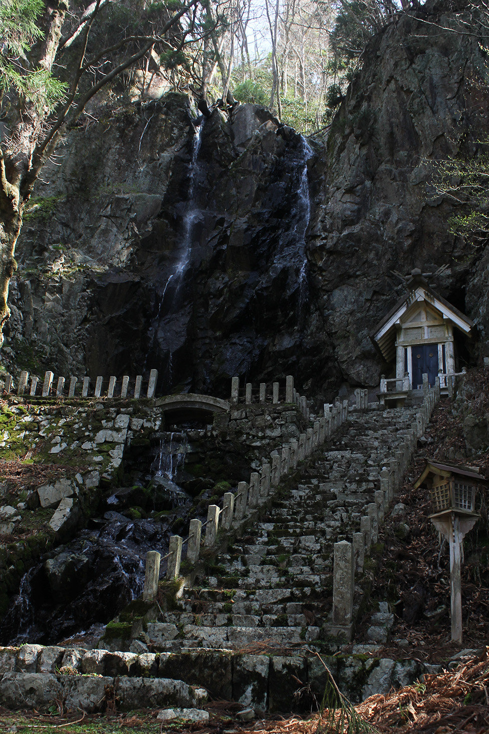 登山口から滝神社までは、徒歩30分ほどで山道や階段を登ります。